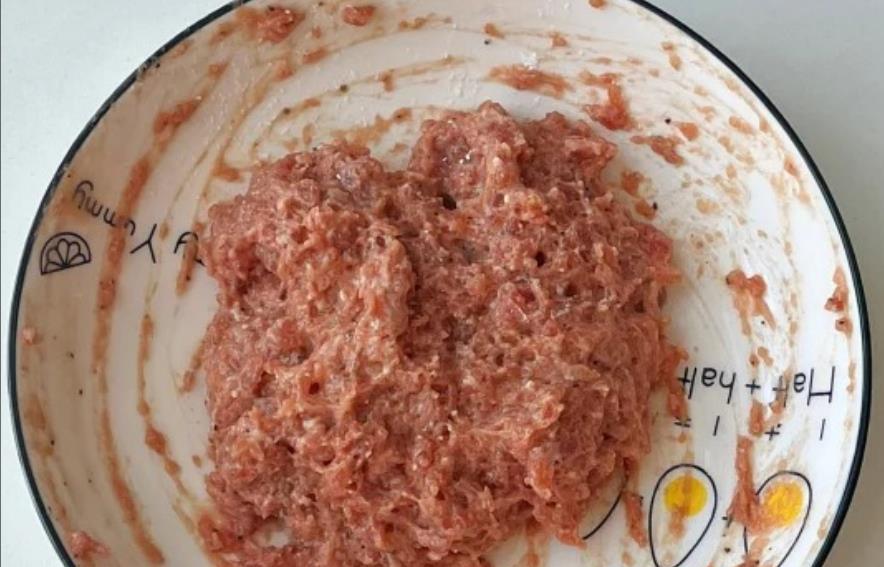 第三步:牛肉里脊要洗干净,切成若干小块,然后剁碎成肉馅,有一点颗粒感,这样牛肉丸的口感更好,用手快速摔打上劲。第四步:牛肉馅放在器皿里,加上生抽,鸡蛋清,食盐和胡椒粉,将牛肉馅顺时针搅拌,让肉馅充分入味,这样肉丸子口感非常Q弹。